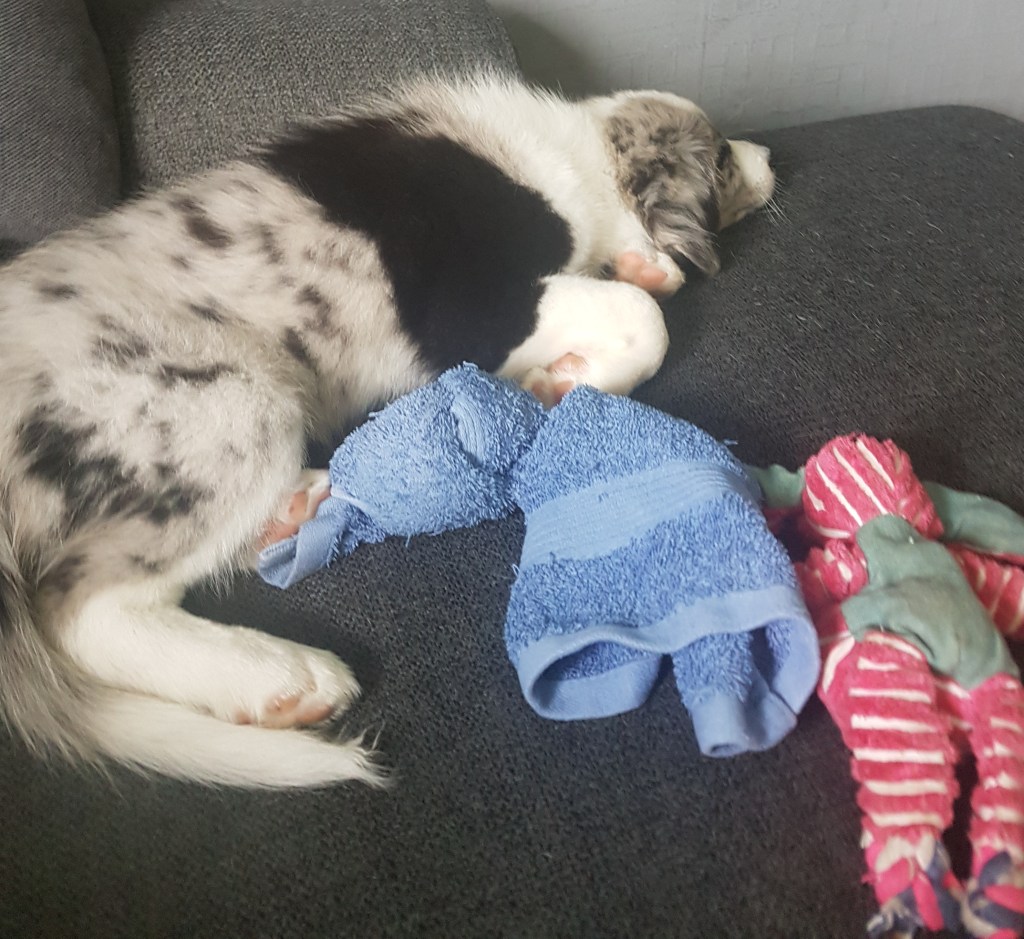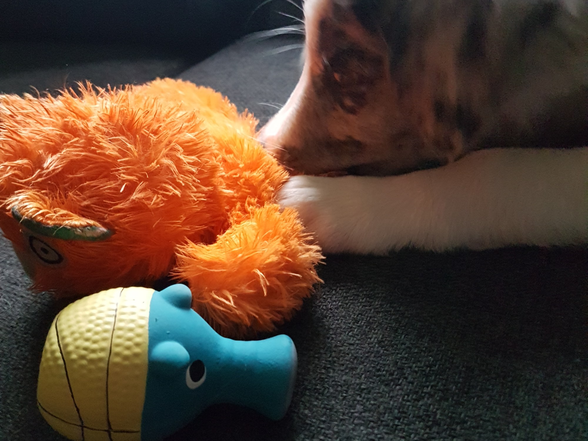 Yawn.. oh .. just one more toy… oh… zzz..